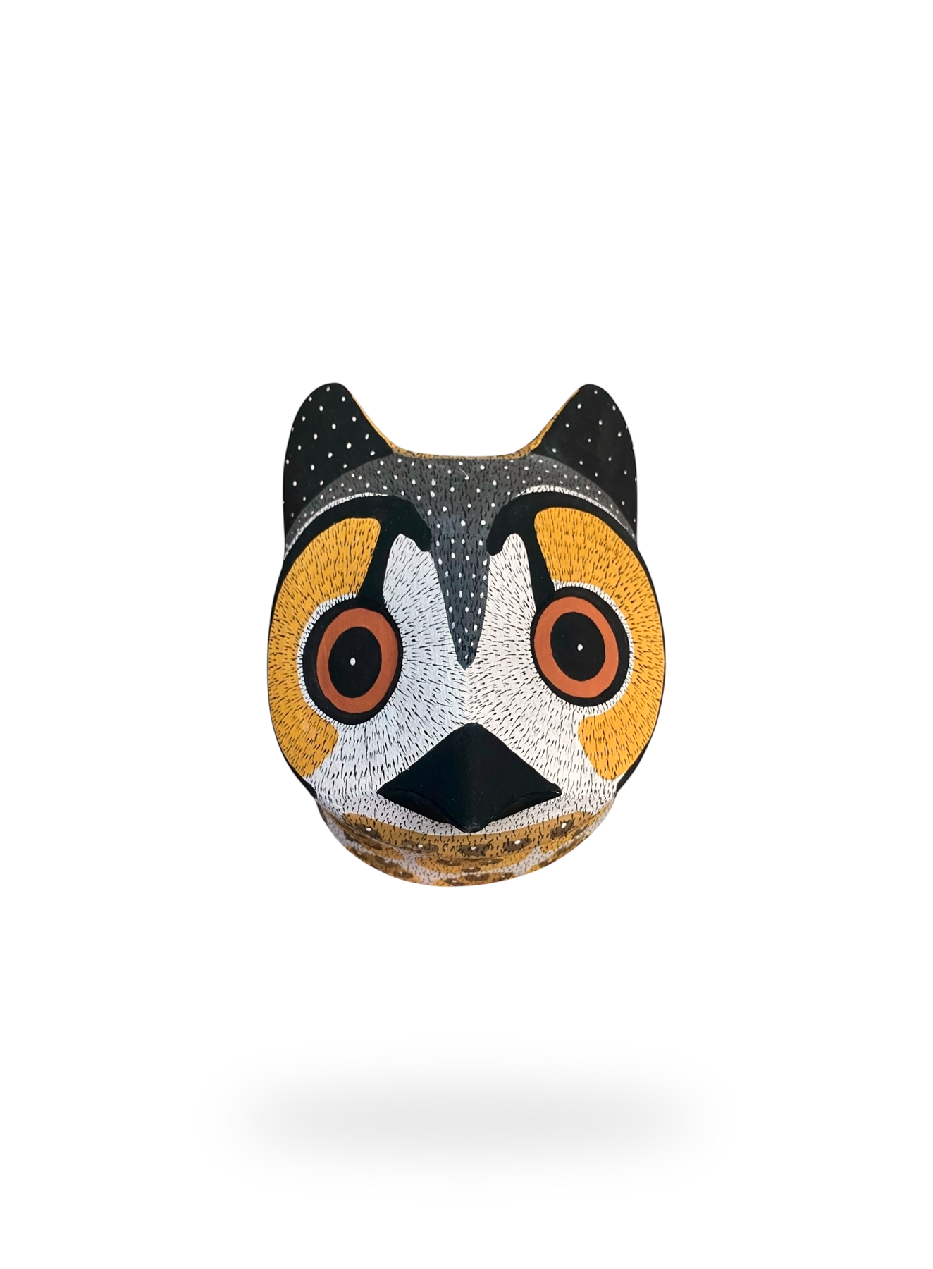 This decorative mask is hand-carved and hand-painted using traditional techniques by skilled artisans from the Chané indigenous group in Salta, Argentina. These masks have a sacred and personal connection to each artisan and their culture. This is a unique, one-of-one piece signed by the artist.