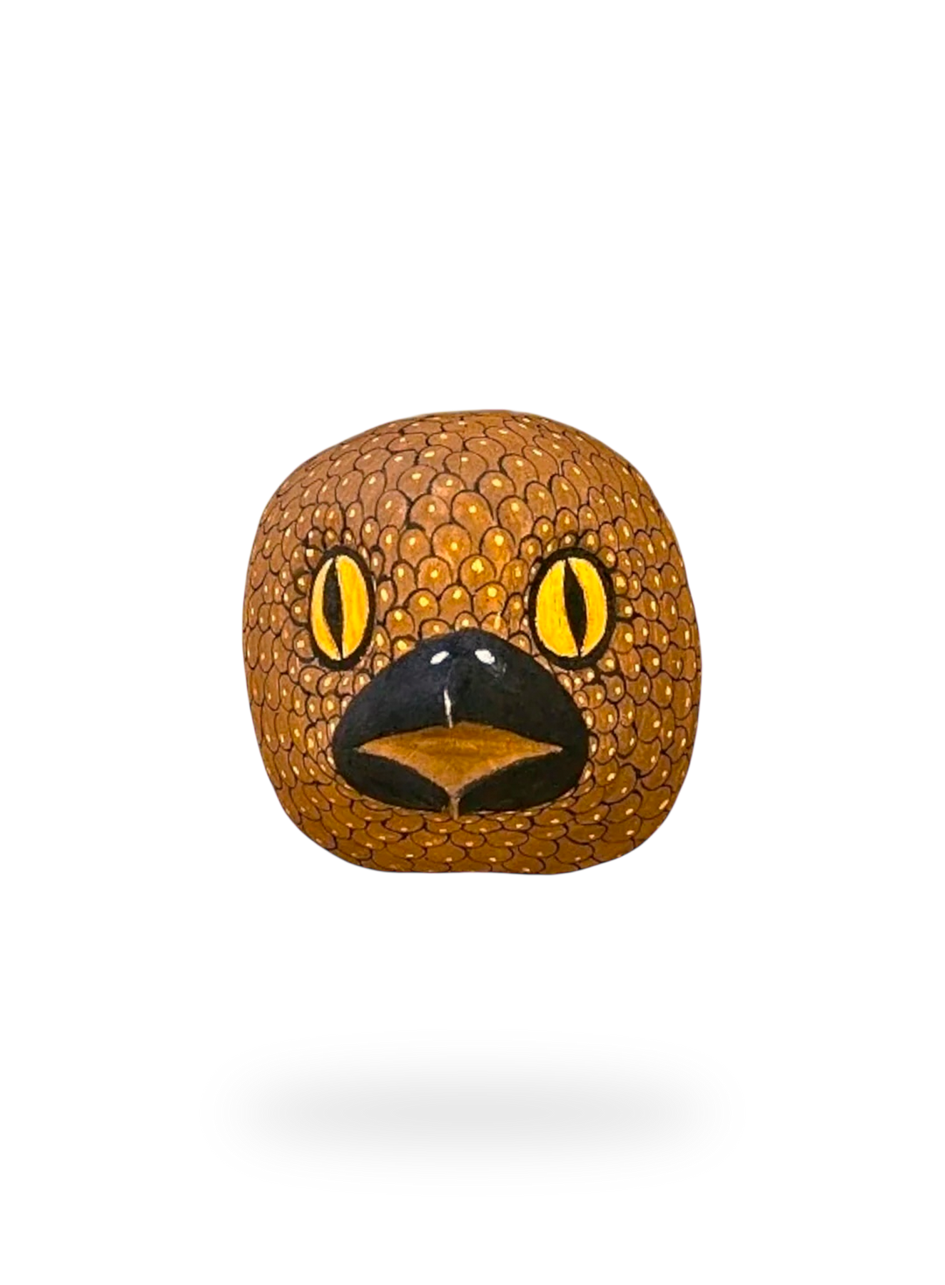 This decorative mask is hand-carved and hand-painted using traditional techniques by skilled artisans from the Chané indigenous group in Salta, Argentina. These masks have a sacred and personal connection to each artisan and their culture. This is a unique, one-of-one piece signed by the artist.