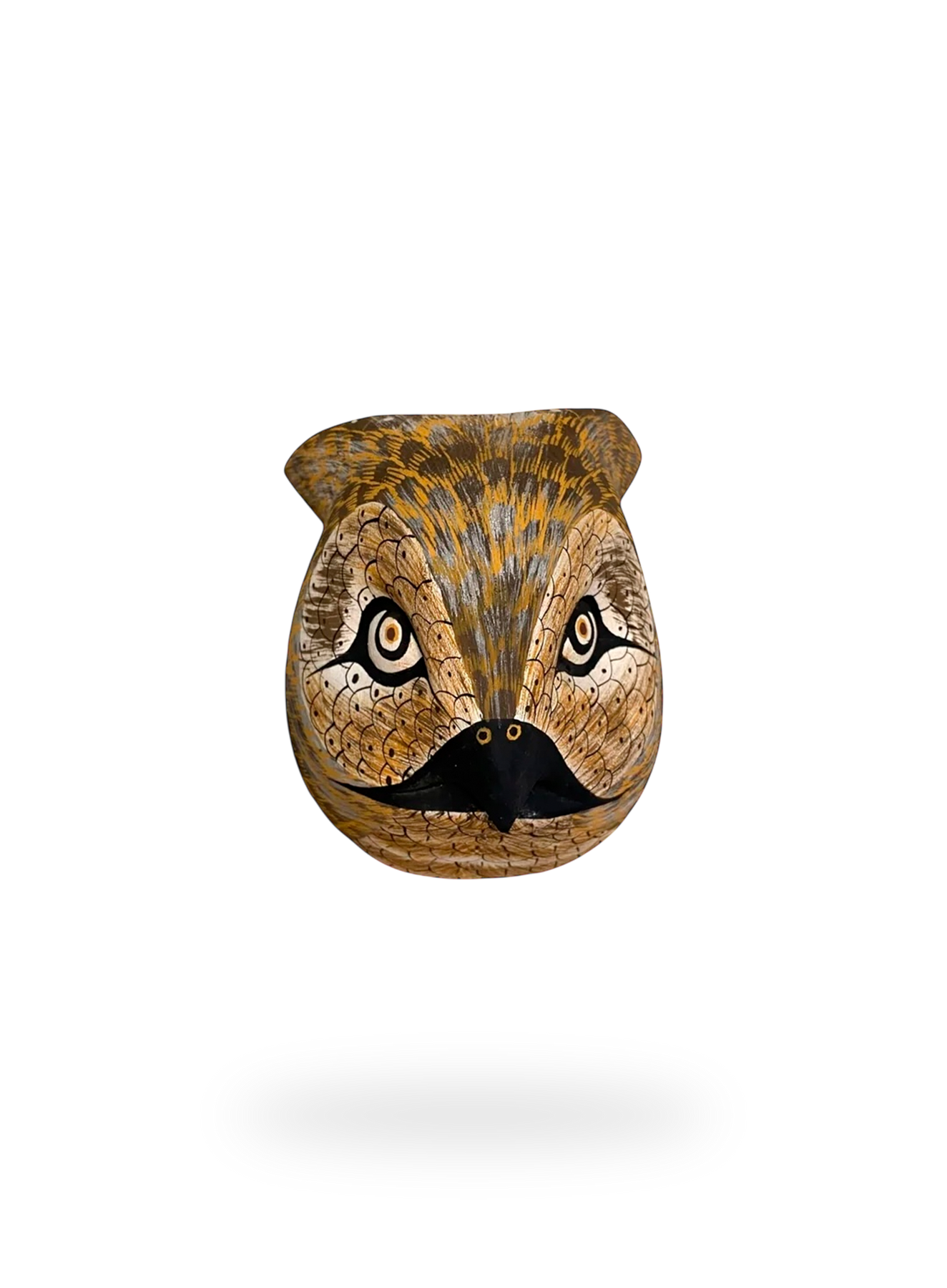 This decorative mask is hand-carved and hand-painted using traditional techniques by skilled artisans from the Chané indigenous group in Salta, Argentina. These masks have a sacred and personal connection to each artisan and their culture. This is a unique, one-of-one piece signed by the artist.