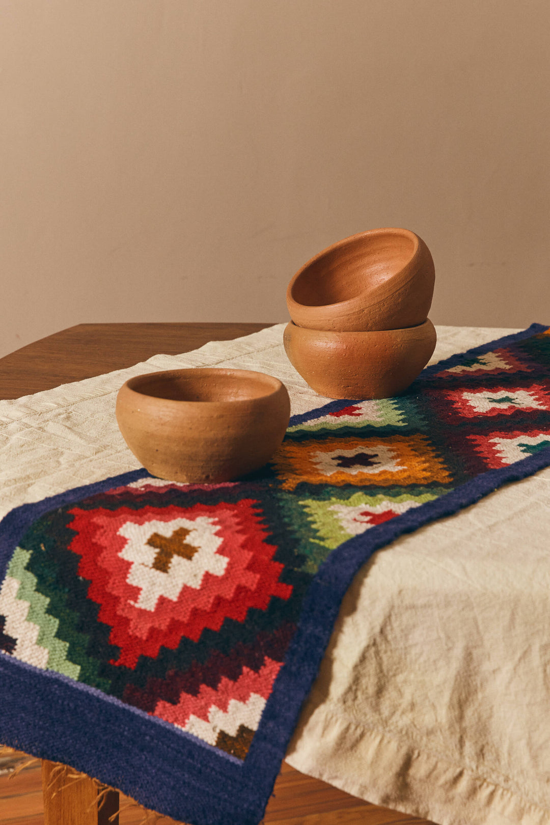Our table runners are made in rural Jujuy by artisans who wish to remain anonymous. Mauro Vidte, who we met in Purmamarca, Jujuy, procures the runners from several families living in the countryside.