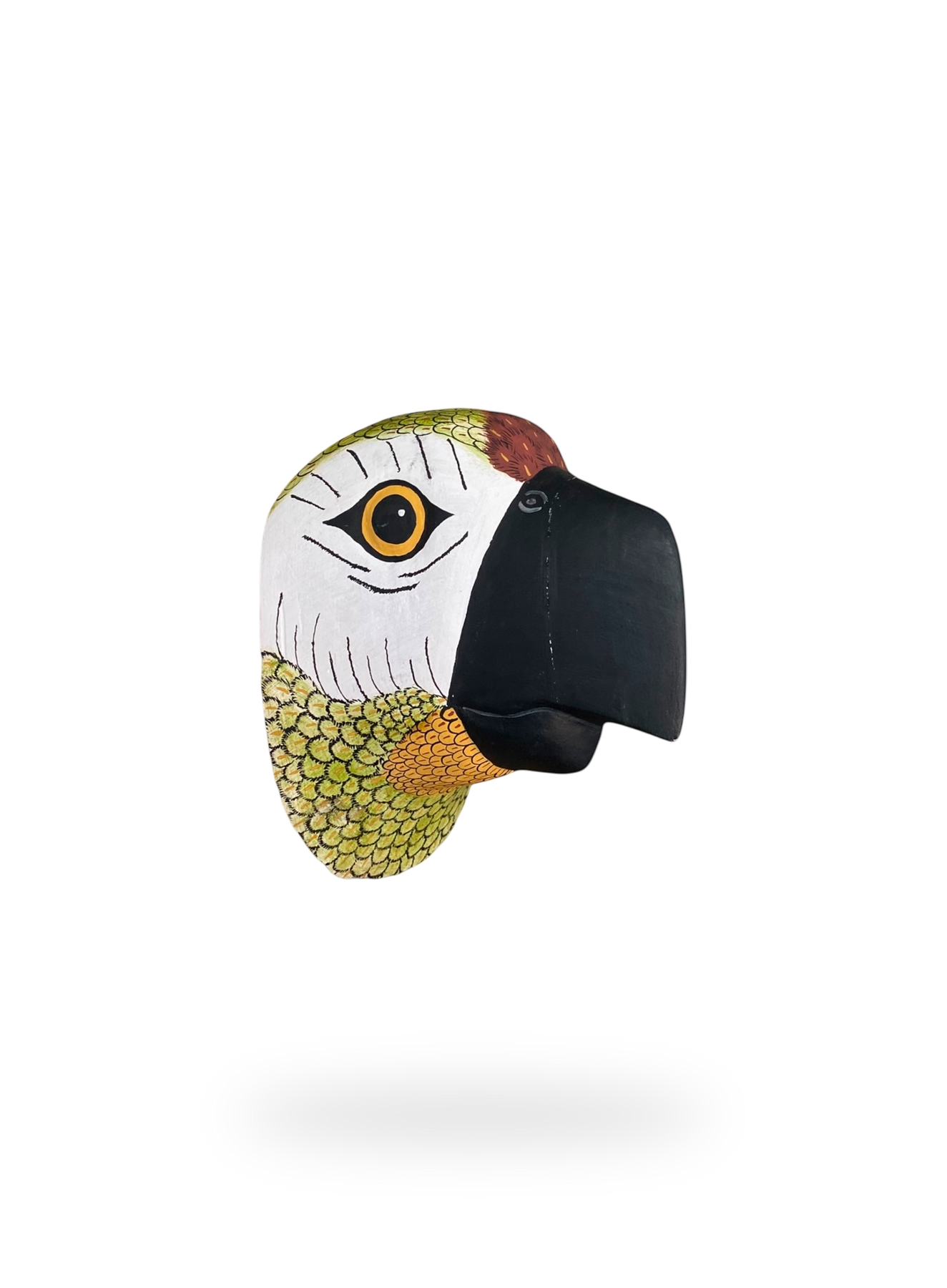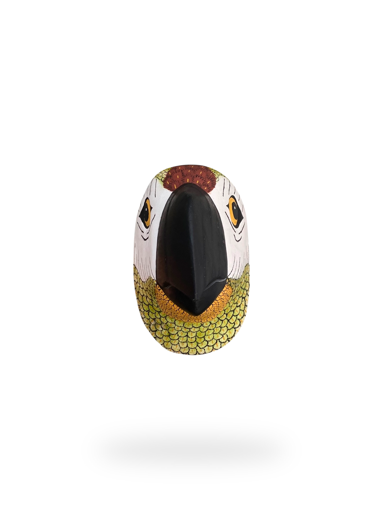This decorative mask is hand-carved and hand-painted using traditional techniques by skilled artisans from the Chané indigenous group in Salta, Argentina. These masks have a sacred and personal connection to each artisan and their culture. This is a unique, one-of-one piece signed by the artist.