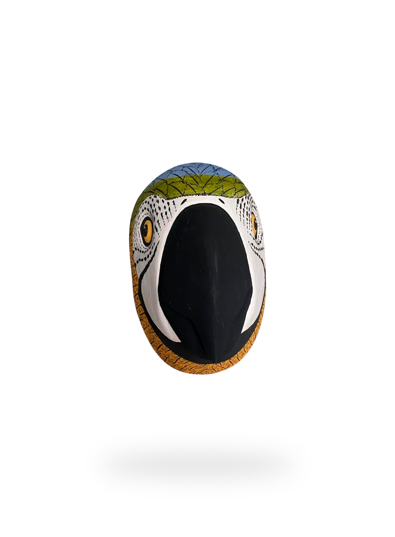 This decorative mask is hand-carved and hand-painted using traditional techniques by skilled artisans from the Chané indigenous group in Salta, Argentina. These masks have a sacred and personal connection to each artisan and their culture. This is a unique, one-of-one piece signed by the artist.