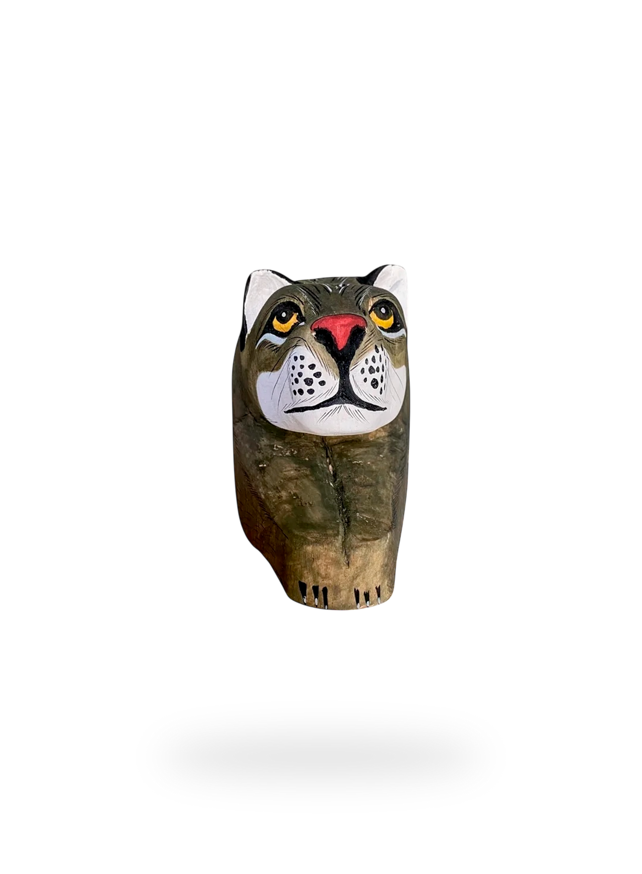 These decorative wooden sculptures rest flat on their paws and/or claws and can be used as bookends or hung on the wall as a decorative mask. It is hand-carved and hand-painted using traditional techniques by skilled artisans from the Chané indigenous group in Salta, Argentina.