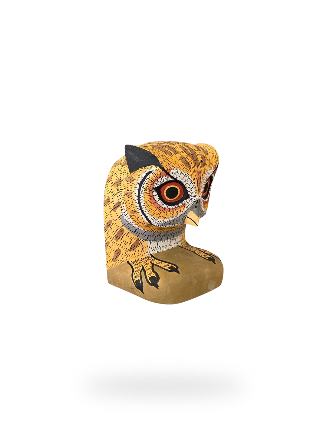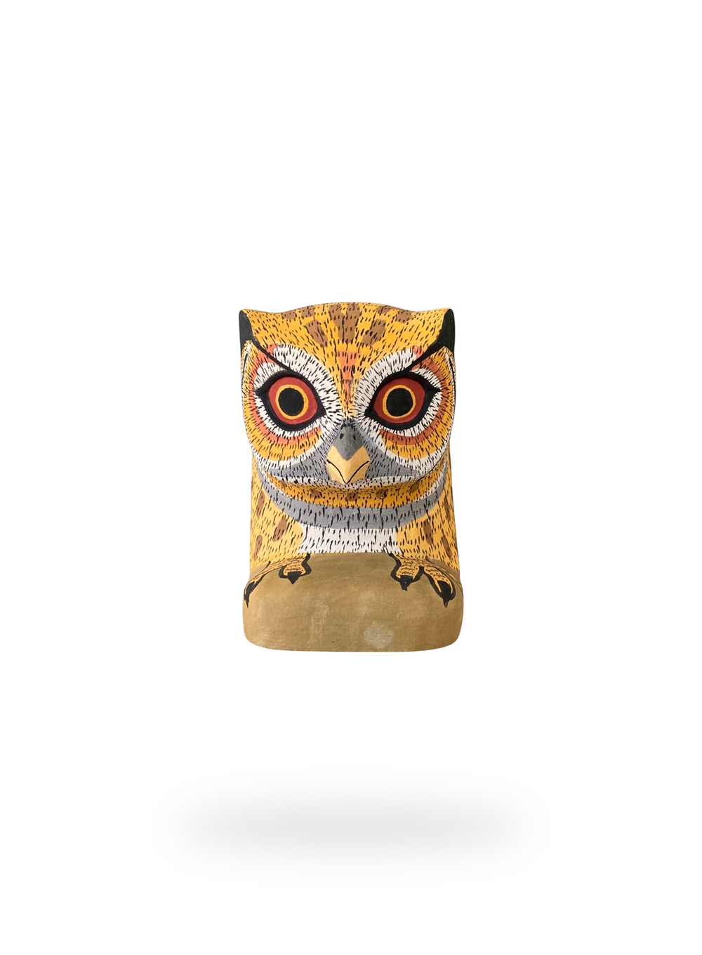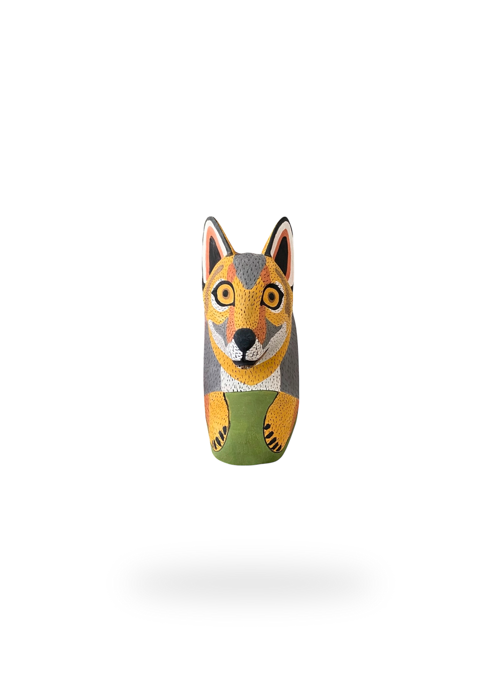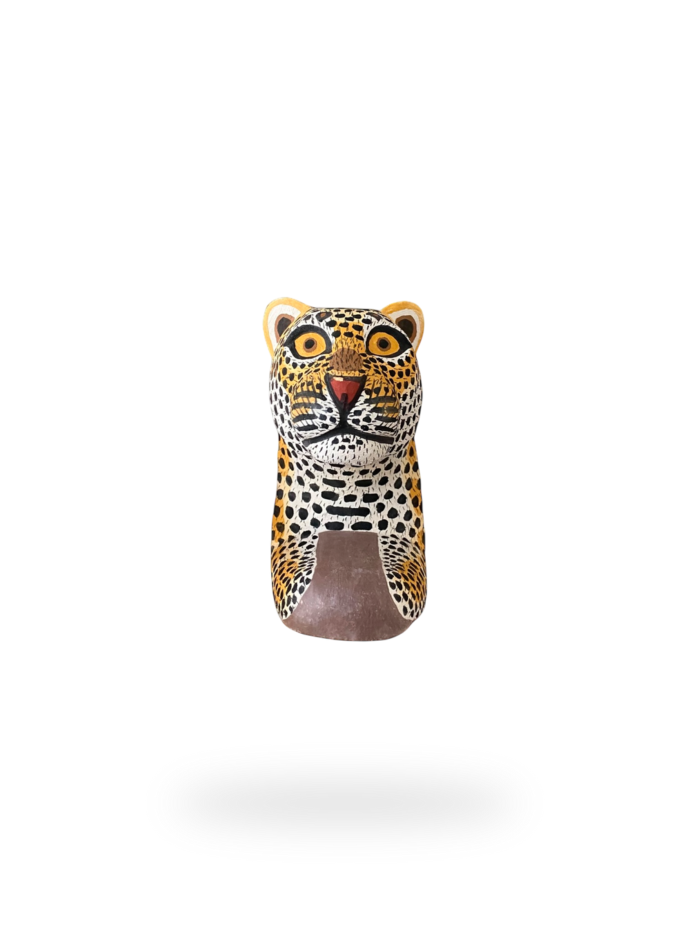 These decorative wooden sculptures rest flat on their paws and/or claws and can be used as bookends or hung on the wall as a decorative mask. They are hand-carved and hand-painted using traditional techniques by skilled artisans from The Chané indigenous group in Salta, Argentina. They can be hung on the wall like traditional masks or can be used as whimsical bookends that really jump off of your shelves.