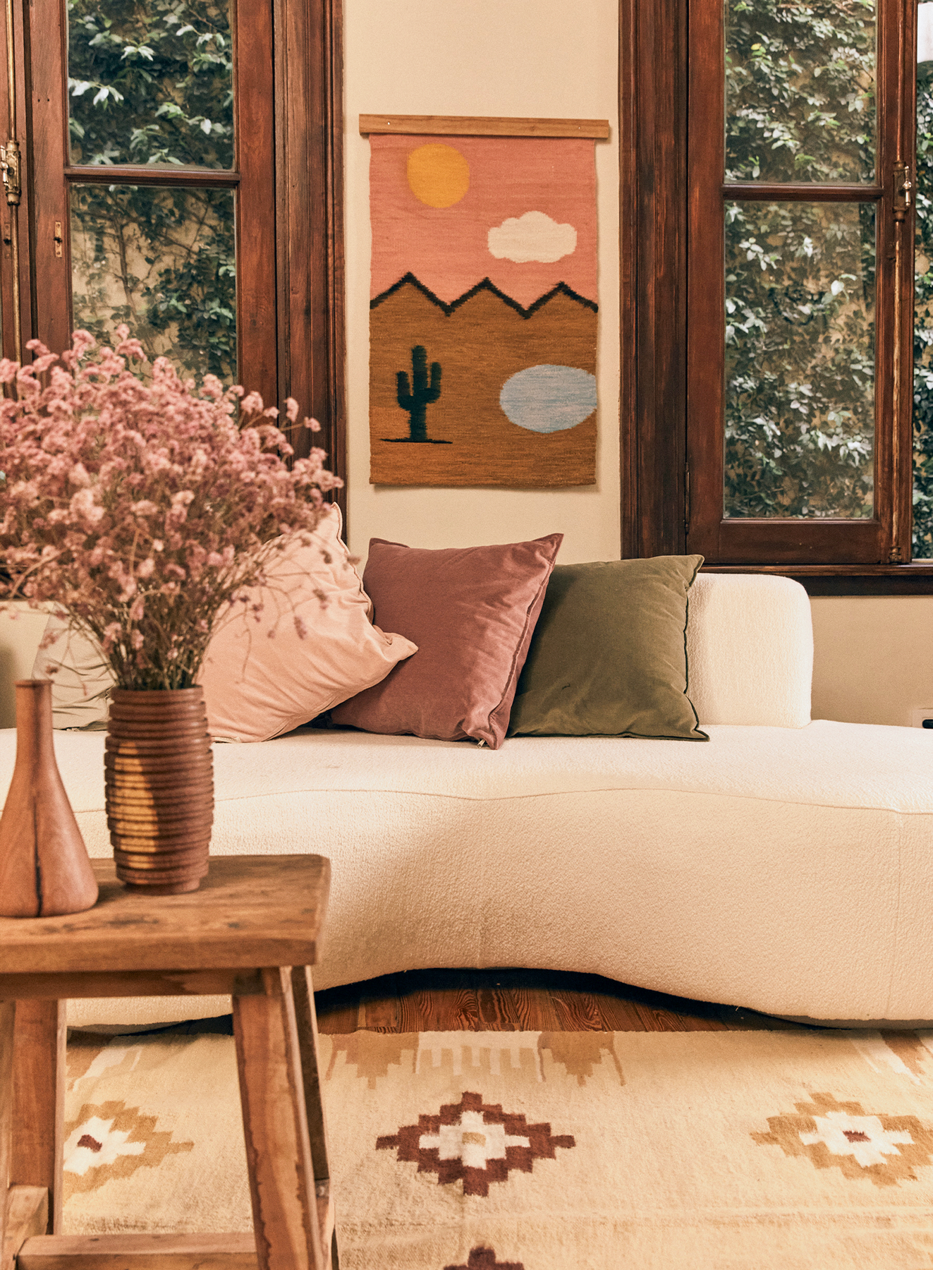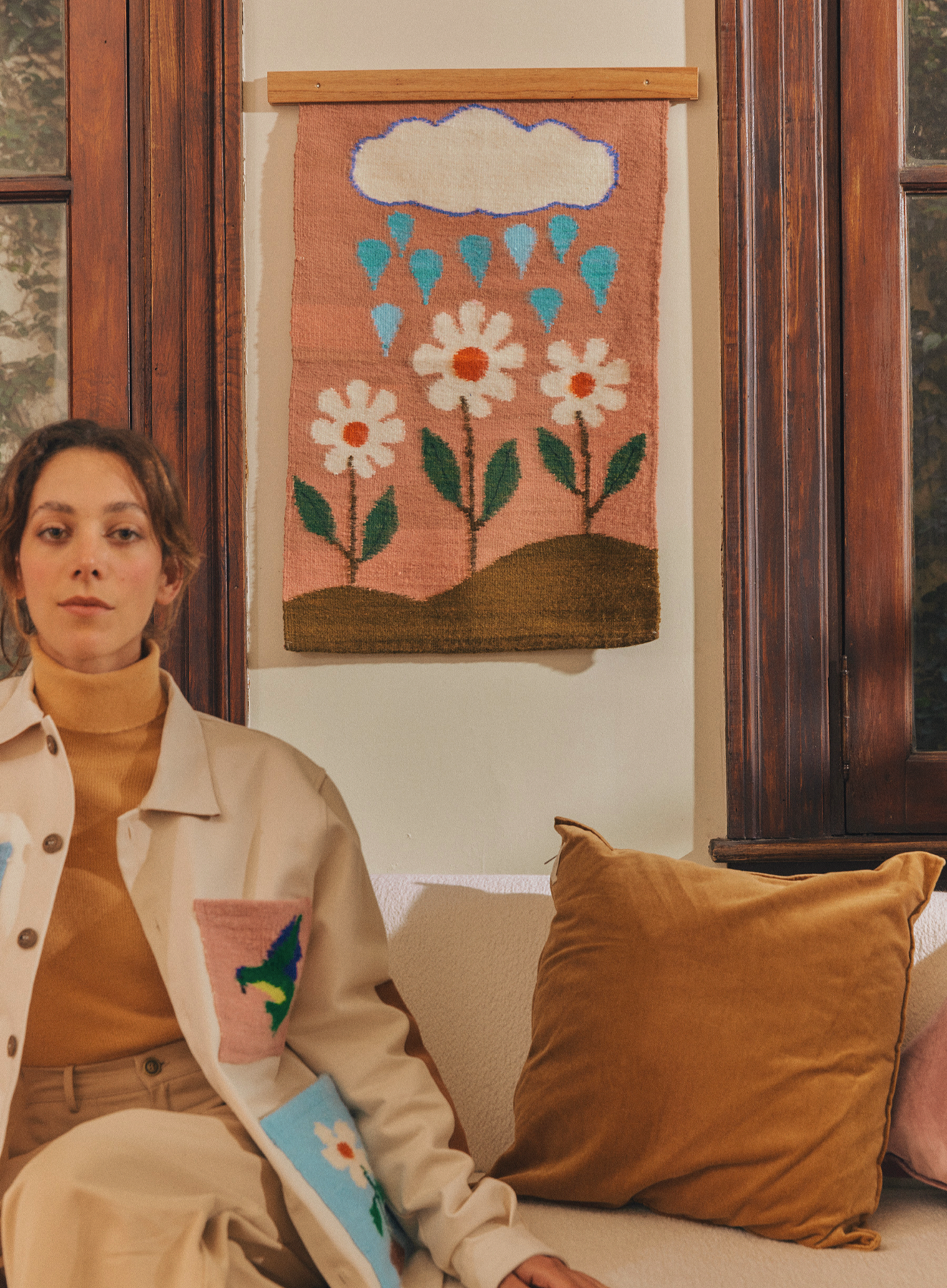 This tapestry was woven in Jujuy, Argentina, on a traditional loom using lambswool that is spun and dyed by hand. The asymmetries and beauty marks are part of what make this artisanal piece so unique, and in our eyes, so perfect.