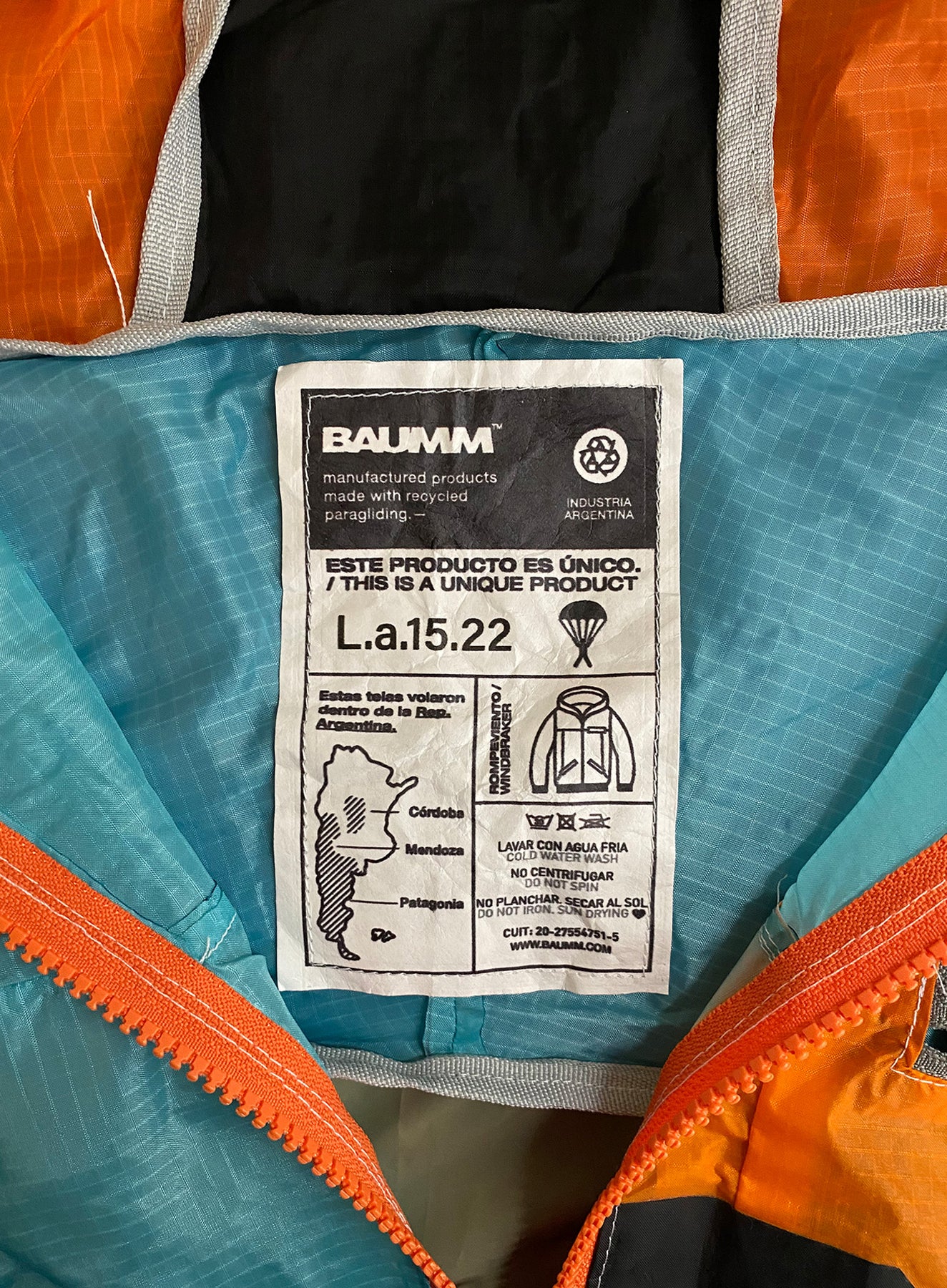 This is a parachute jacket – literally. The Buenos Aires-based Baumm makes colorful windbreakers from a patchwork of discarded parachutes that have maxed out their flight hours.