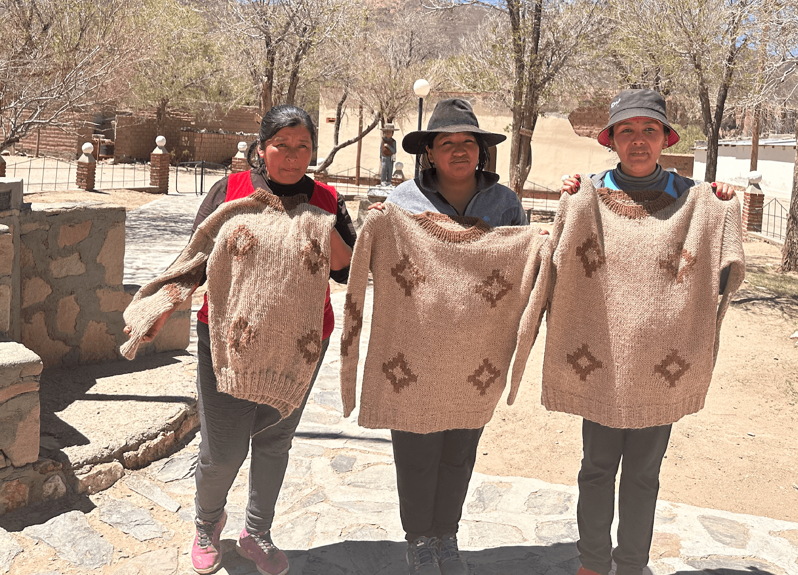These sweaters are made from start to finish by Emilia, Yanina, and Andrea in rural Jujuy, Argentina. Pictured Below!