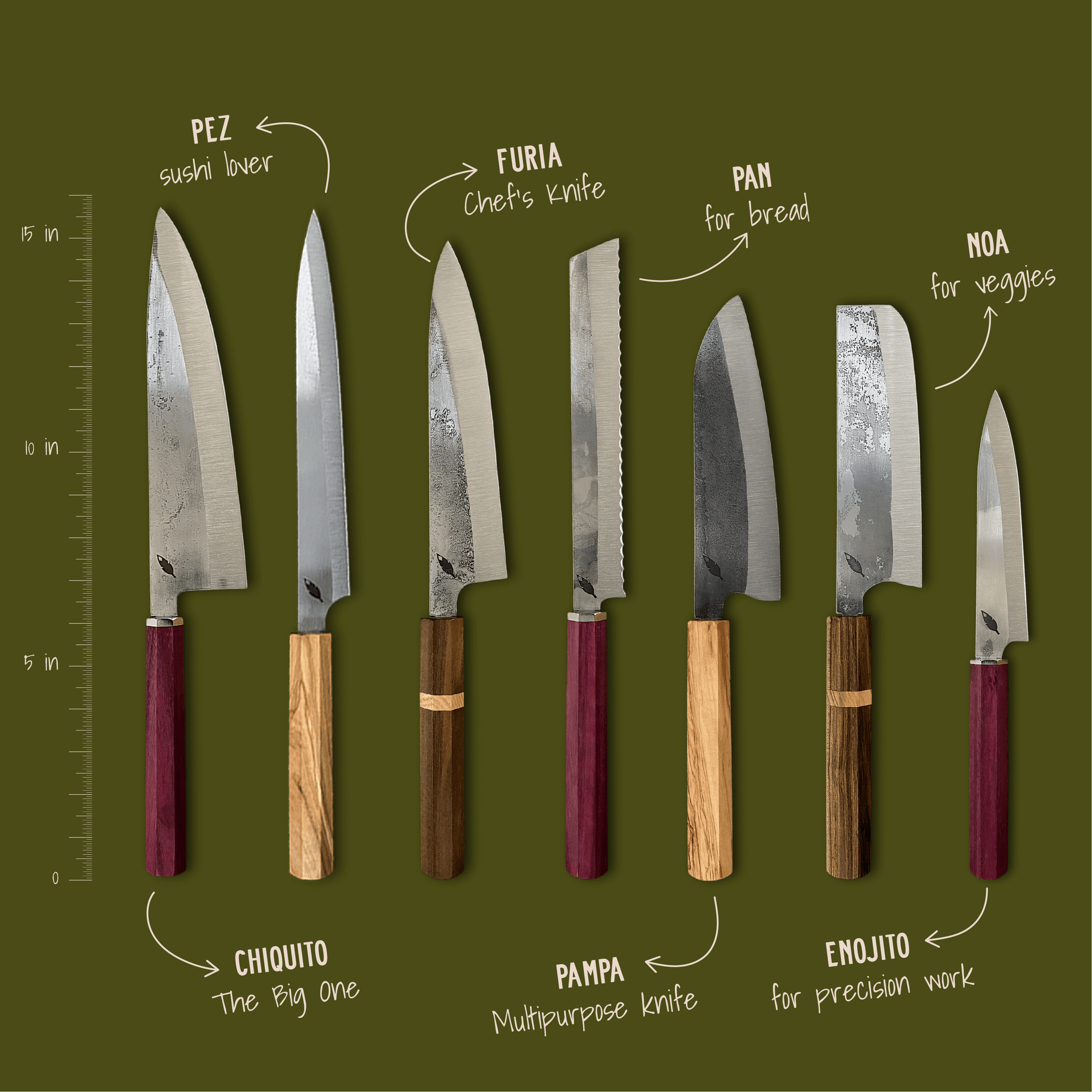 Buenos Aires, where our knives are made, is known as “La Cuidad de la Furia”, giving Furia its name. It is our version of the classic Japanese Gyuto and our Flagship Chef Knife - Furia is versatile & formidable.