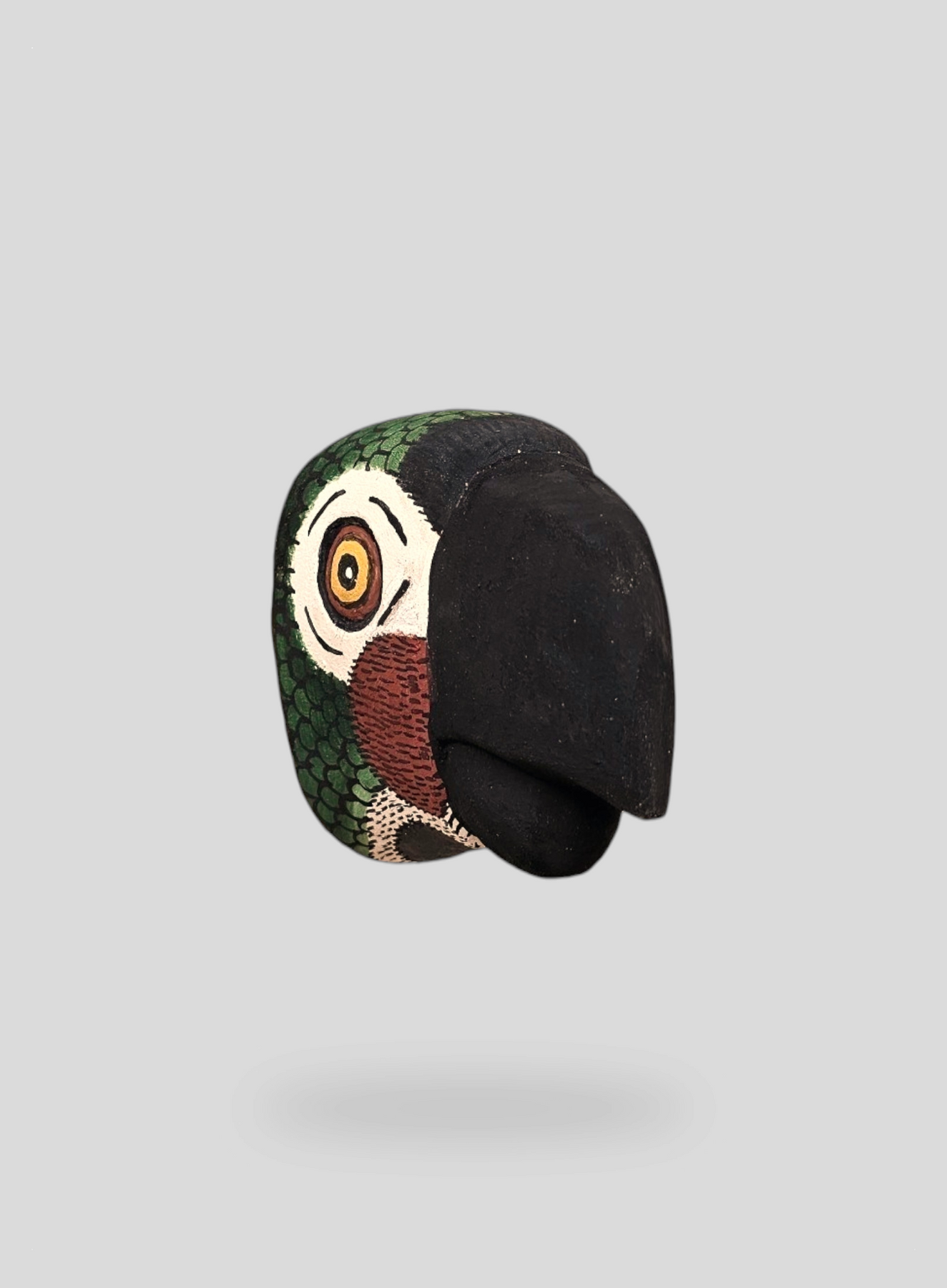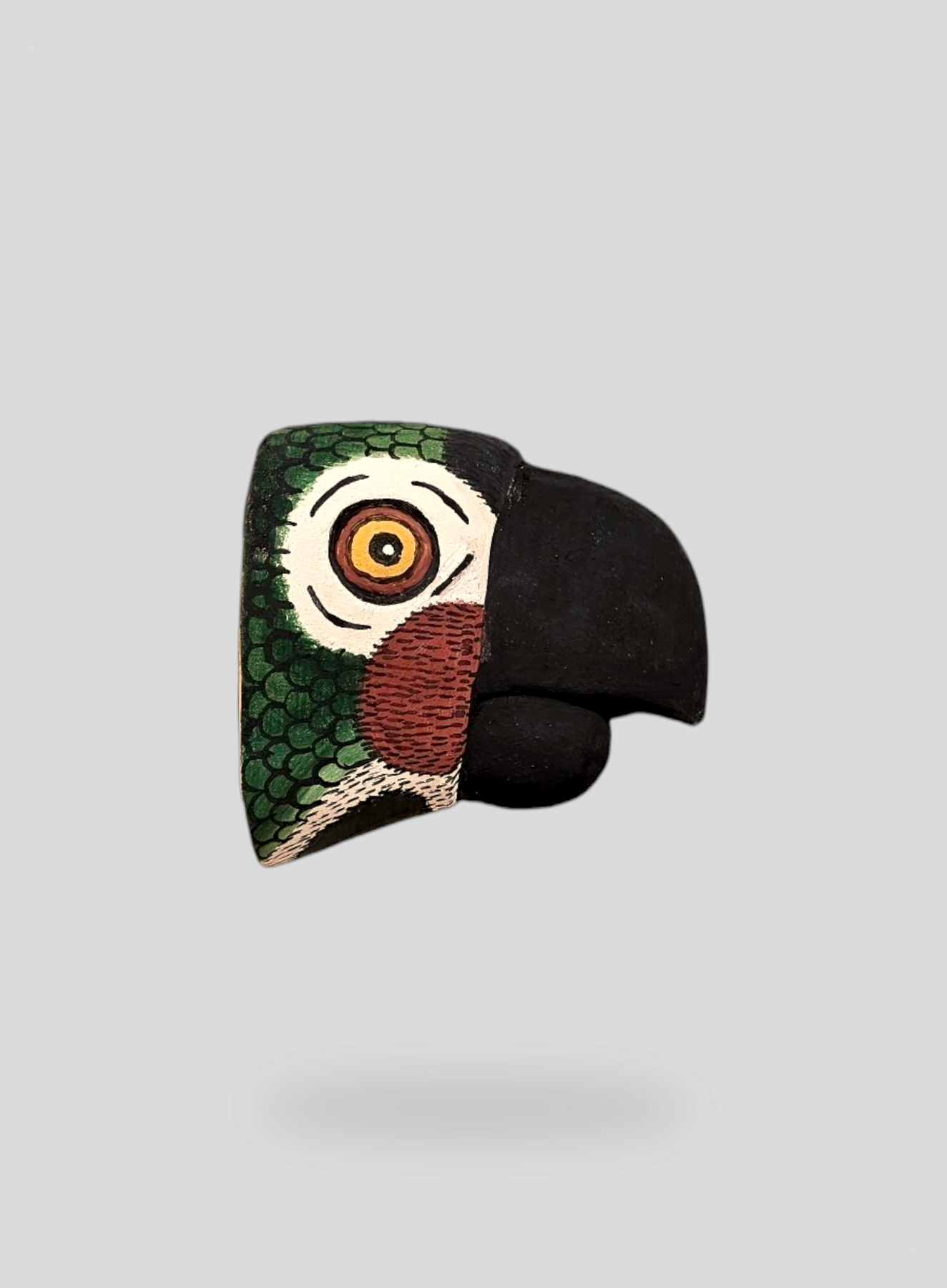 This decorative mask is hand-carved and hand-painted using traditional techniques by skilled artisans from the Chané indigenous group in Salta, Argentina. These masks have a sacred and personal connection to each artisan and their culture. This is a unique, one-of-one piece signed by the artist.