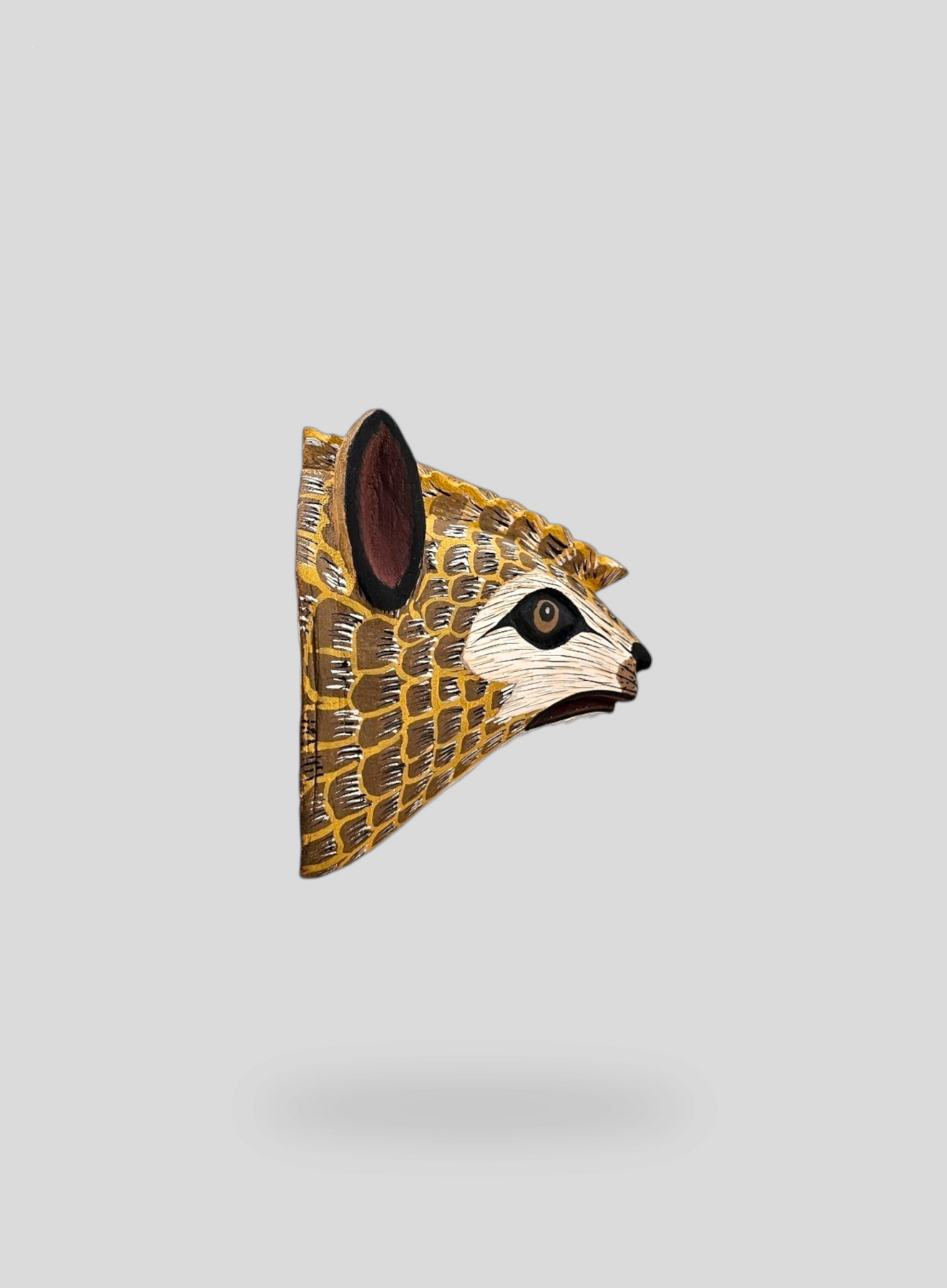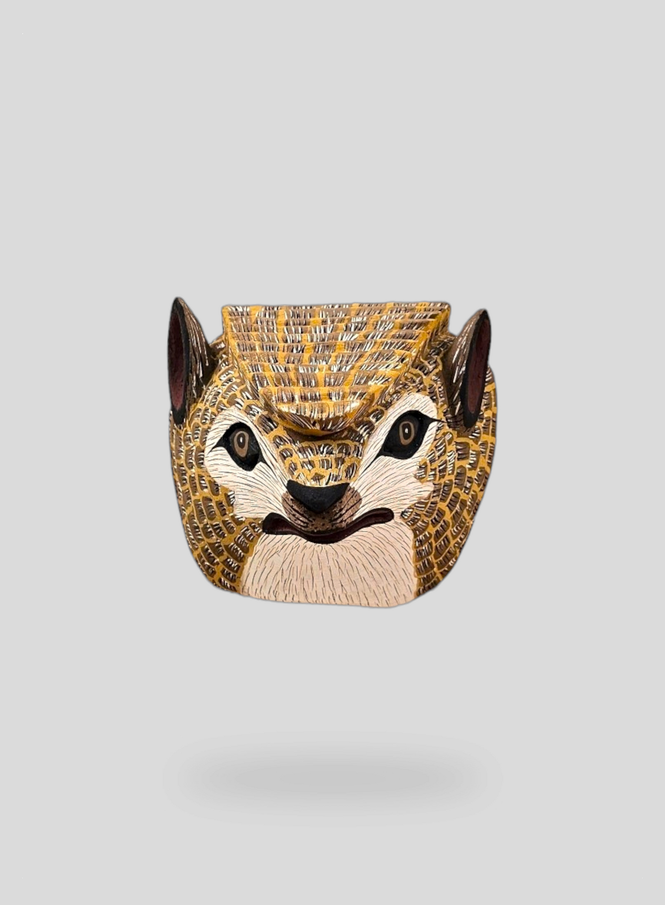 This decorative mask is hand-carved and hand-painted using traditional techniques by skilled artisans from the Chané indigenous group in Salta, Argentina. These masks have a sacred and personal connection to each artisan and their culture. This is a unique, one-of-one piece signed by the artist.