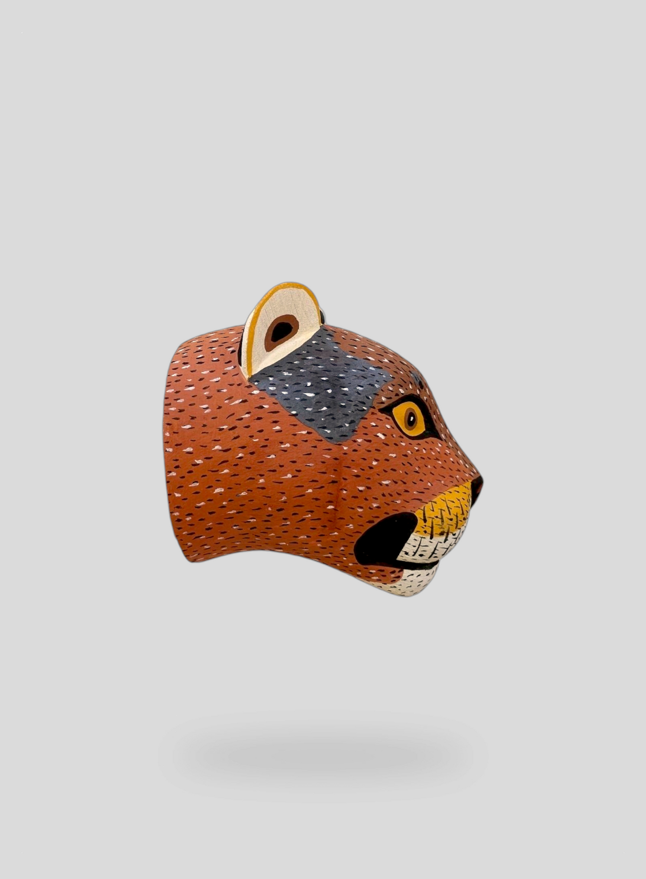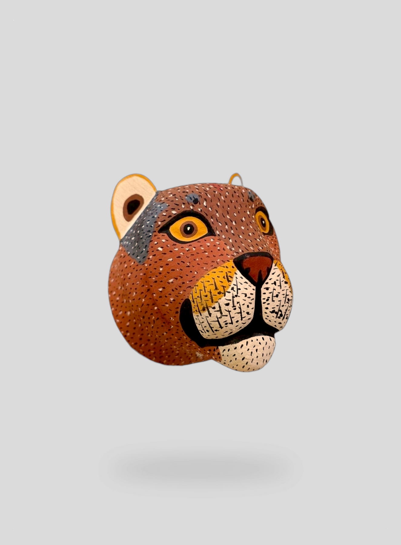 This decorative mask is hand-carved and hand-painted using traditional techniques by skilled artisans from the Chané indigenous group in Salta, Argentina. These masks have a sacred and personal connection to each artisan and their culture. This is a unique, one-of-one piece signed by the artist.