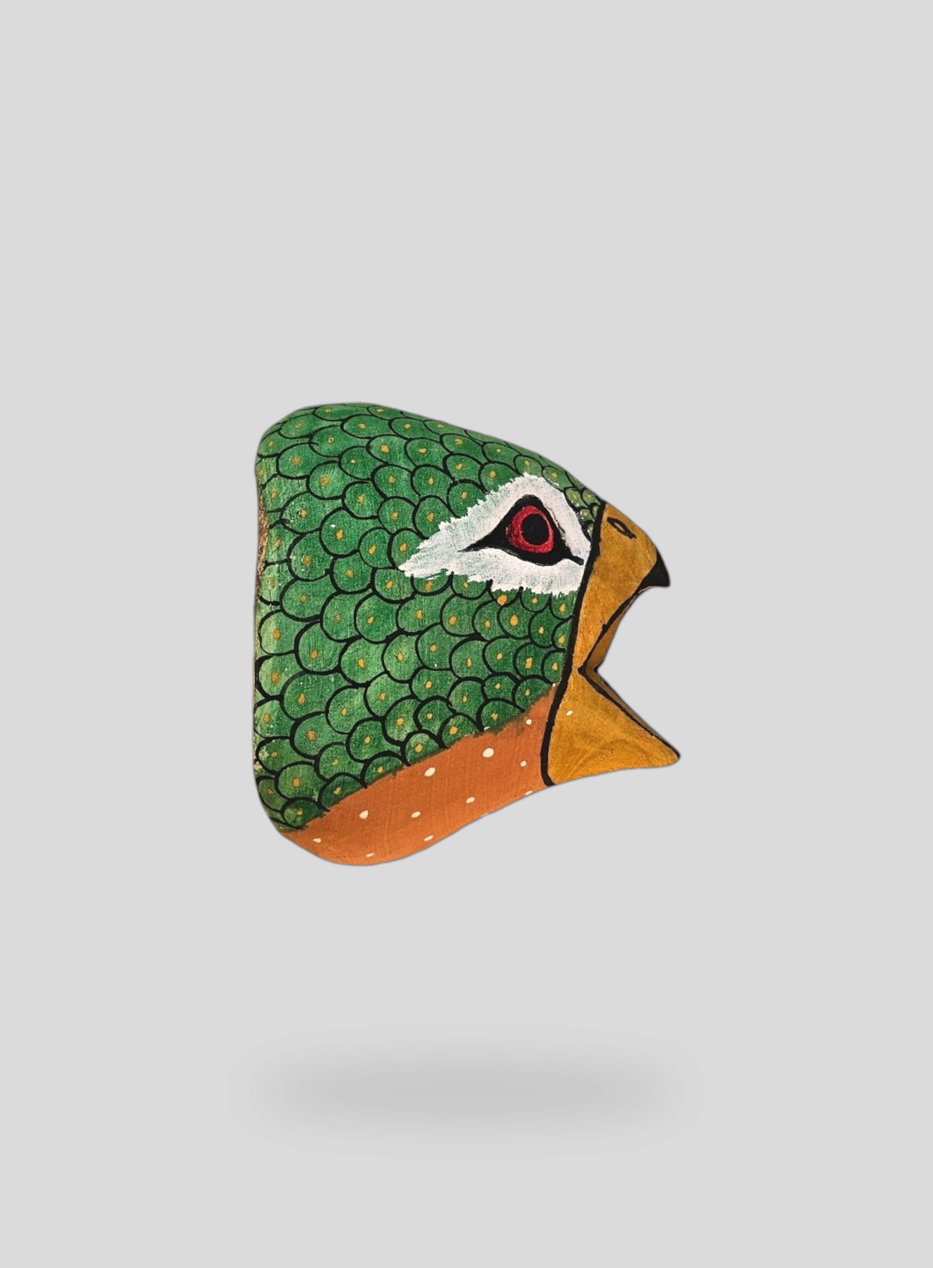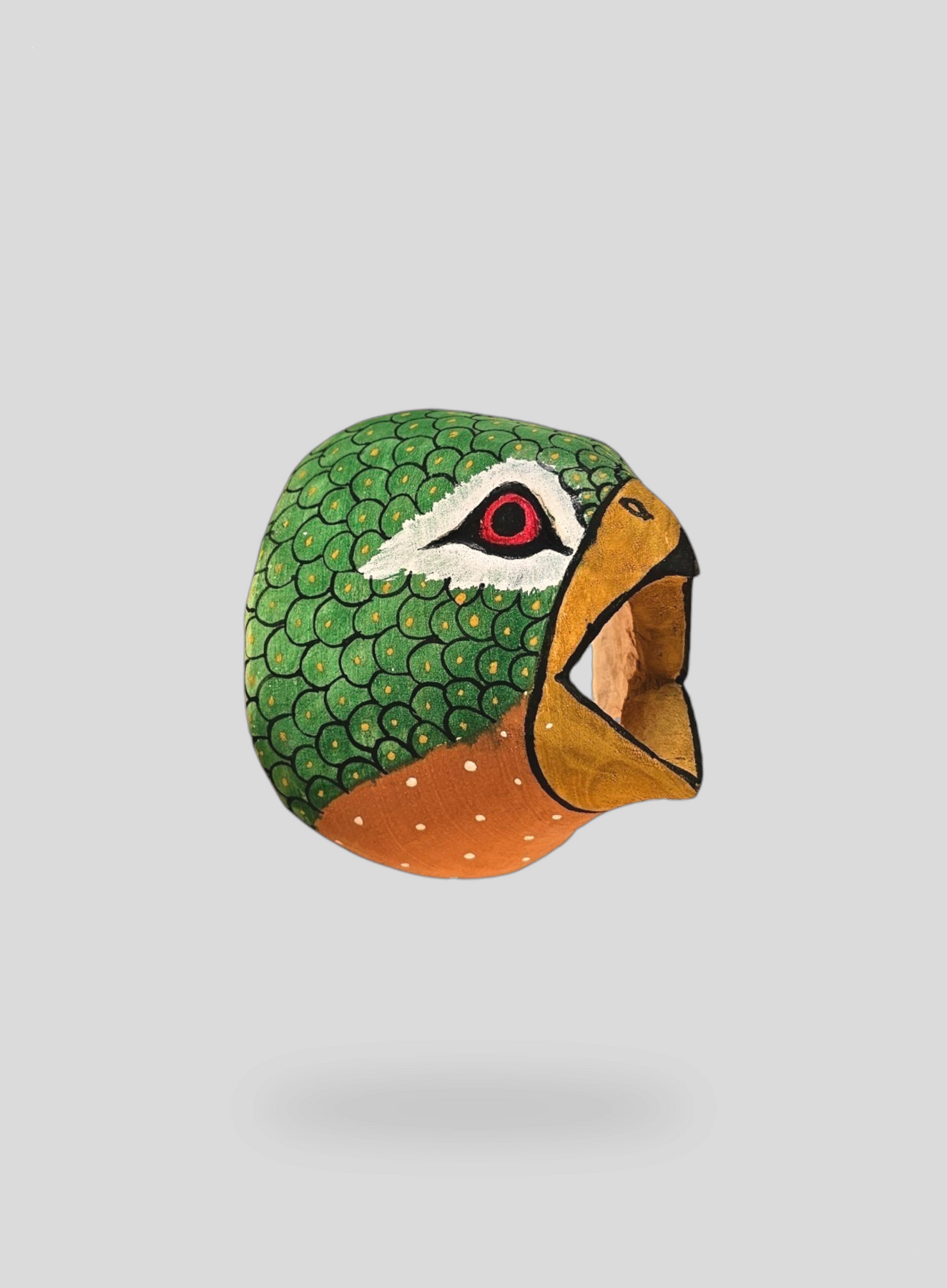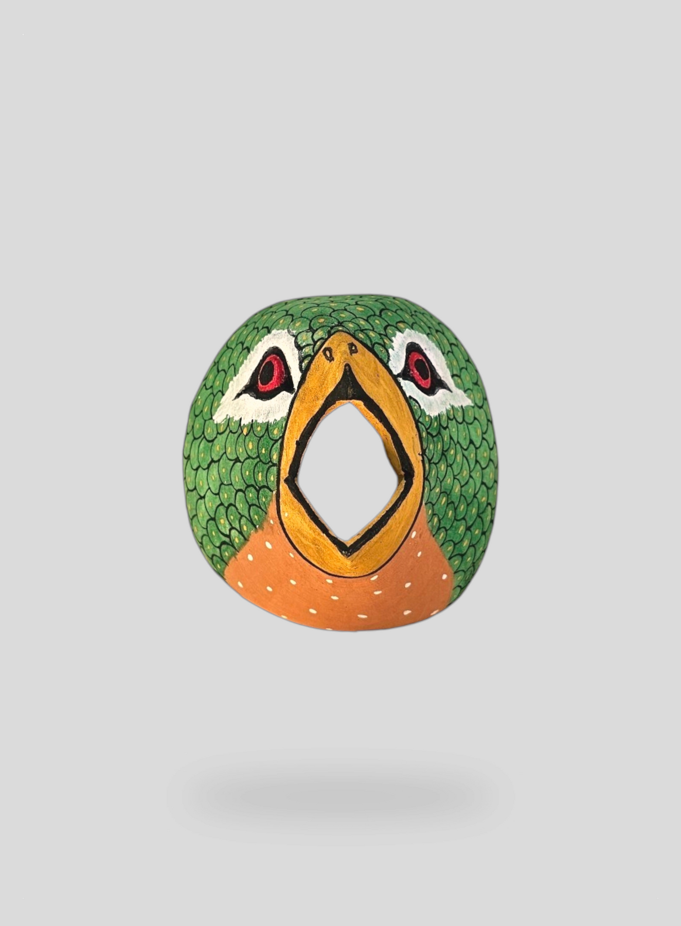 This decorative mask is hand-carved and hand-painted using traditional techniques by skilled artisans from the Chané indigenous group in Salta, Argentina. These masks have a sacred and personal connection to each artisan and their culture. This is a unique, one-of-one piece signed by the artist.