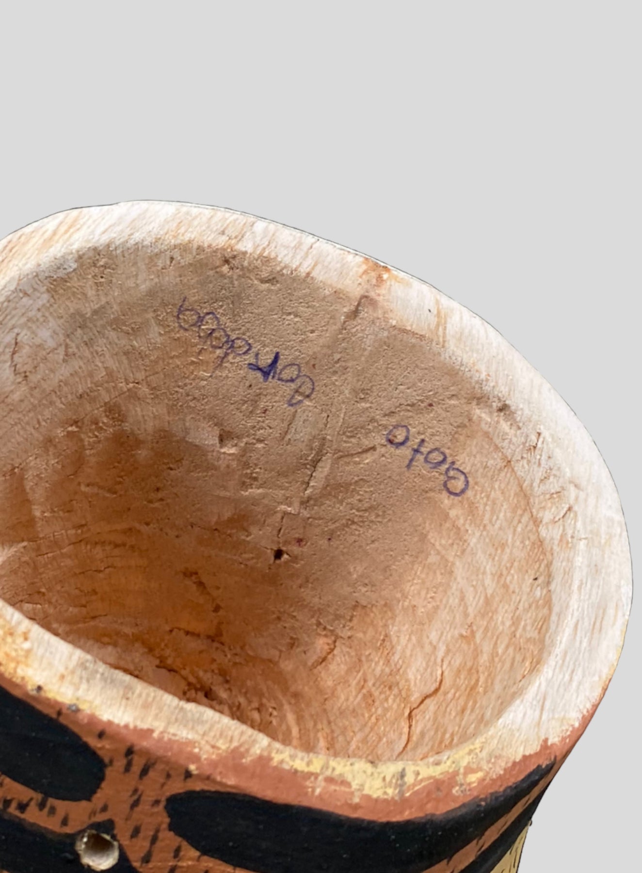 This decorative mask is hand-carved and hand-painted using traditional techniques by skilled artisans from the Chané indigenous group in Salta, Argentina. These masks have a sacred and personal connection to each artisan and their culture. This is a unique, one-of-one piece signed by the artist.