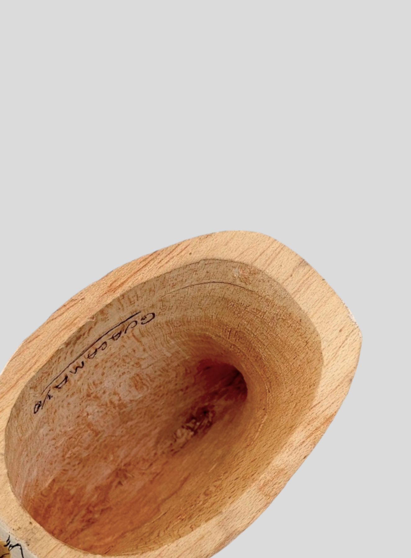 This decorative mask is hand-carved and hand-painted using traditional techniques by skilled artisans from the Chané indigenous group in Salta, Argentina. These masks have a sacred and personal connection to each artisan and their culture. This is a unique, one-of-one piece signed by the artist.