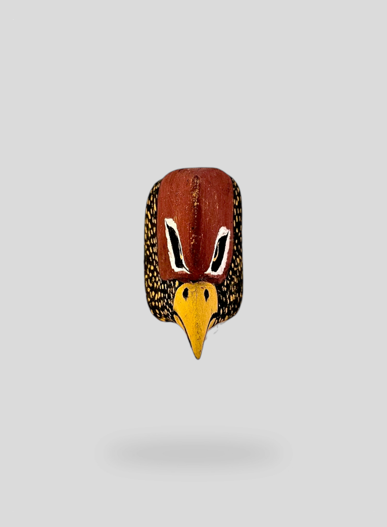 This decorative mask is hand-carved and hand-painted using traditional techniques by skilled artisans from the Chané indigenous group in Salta, Argentina. These masks have a sacred and personal connection to each artisan and their culture. This is a unique, one-of-one piece signed by the artist.