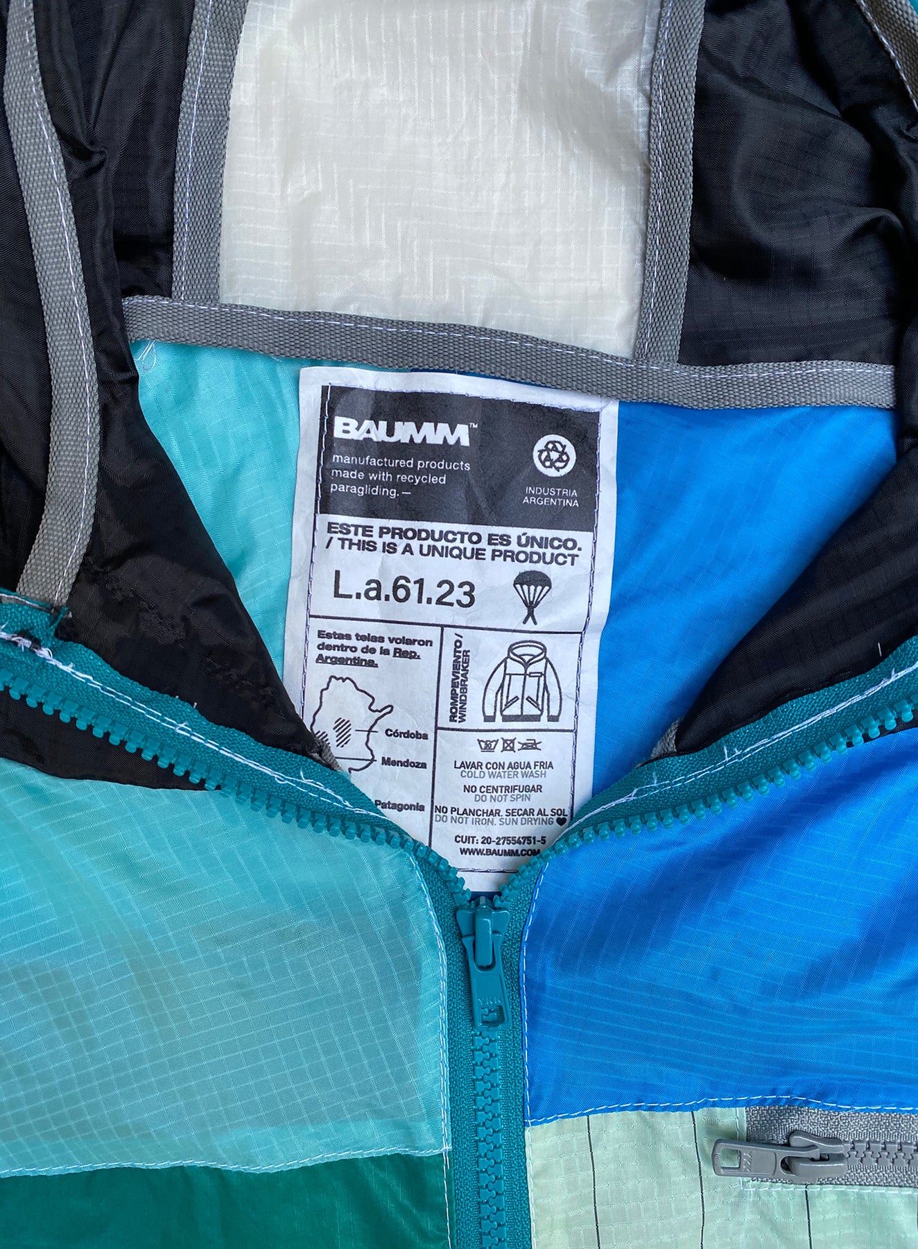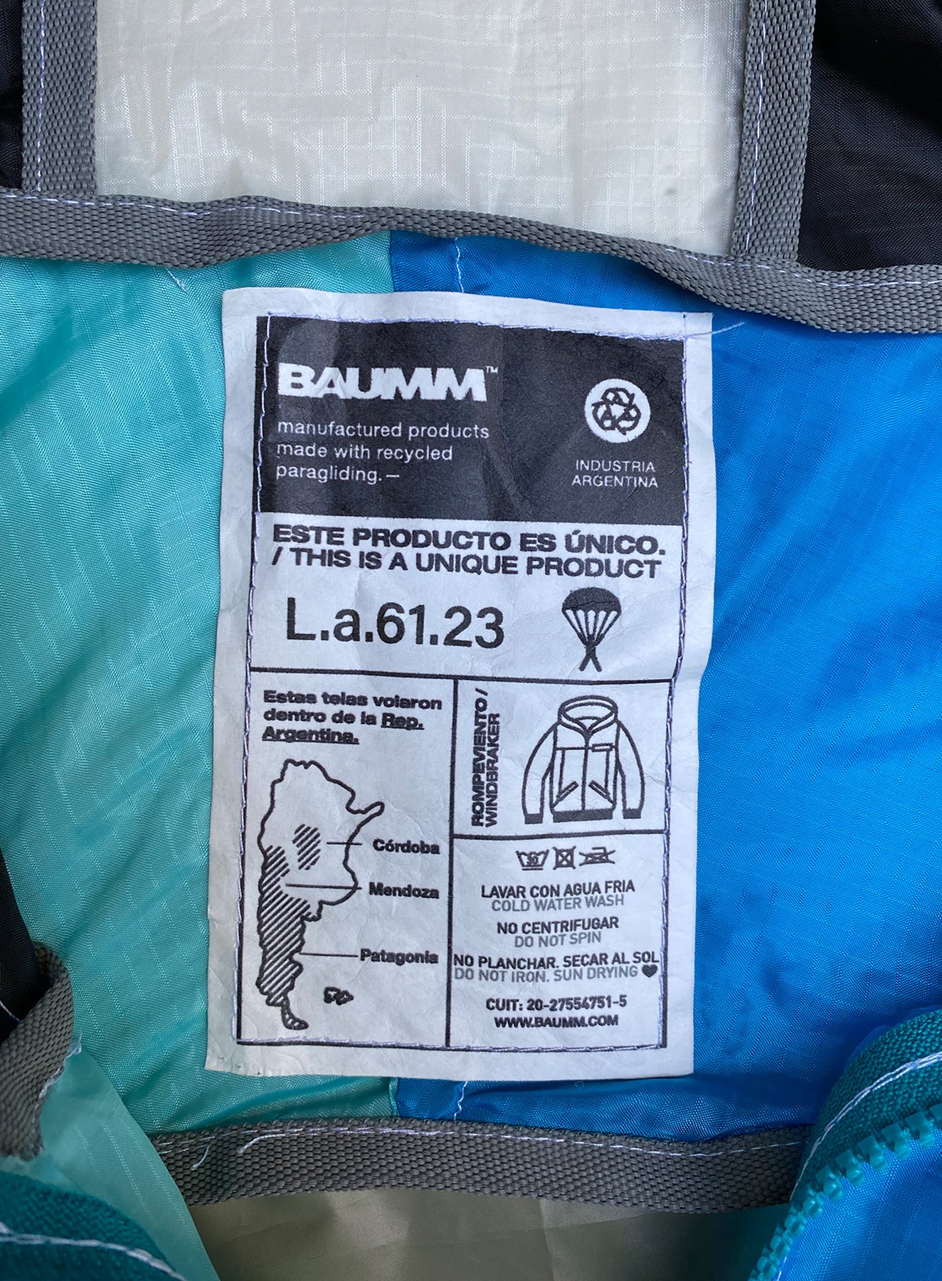This is a parachute jacket – literally. The Buenos Aires-based Baumm makes colorful windbreakers from a patchwork of over 24 pieces cut from discarded parachutes that have maxed out their flight hours. It is lightweight, windproof, water resistant, super sustainable, one-of-a-kind, and downright awesome.